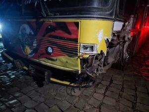 O motorista do ônibus não se feriu, sendo registrados apenas danos materiais no veículo.