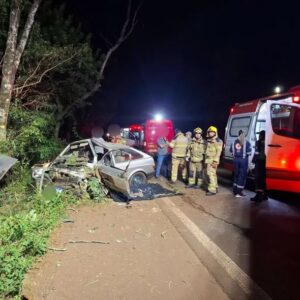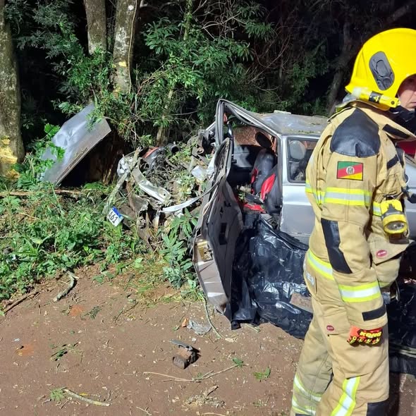 A ocorrência envolveu um caminhão guincho e um veículo Volkswagen Gol. Conforme as informações apuradas no local, o automóvel colidiu na lateral do caminhão, fazendo com que o condutor perdesse o controle da direção. Na sequência, o carro saiu da pista e colidiu violentamente contra uma árvore, ficando preso às ferragens.