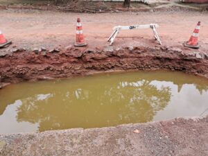 Outro ponto crítico destacado pela comunidade é a falta de segurança no entorno. Apenas cavaletes foram colocados para sinalizar o buraco na via, enquanto o lado da calçada segue sem qualquer tipo de proteção, expondo pedestres ao perigo.