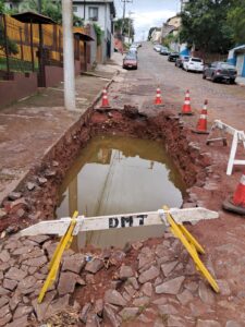 Na tarde desta quarta-feira (25), a equipe do portal Notícias RS esteve na rua Coronel Martins, no bairro São Miguel, em Cruz Alta, onde produziu uma reportagem sobre um buraco de grandes proporções que tem causado preocupação e indignação entre os moradores da região.