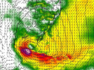 Entre a sexta-feira e o sábado, a área de baixa pressão se aprofunda, inicialmente sobre o Norte e o Nordeste da Argentina, provocando chuva intensa e tempestades, e migra em direção ao Uruguai. No sábado, o sistema se intensifica sobre o Rio da Prata e o Sul uruguaio, configurando-se como um ciclone extratropical.