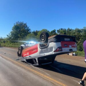 Apesar do impacto e dos danos materiais causados, ninguém ficou ferido. Equipes de atendimento foram acionadas para o local, e o trânsito ficou parcialmente interrompido até a retirada do veículo capotado e a limpeza da via.