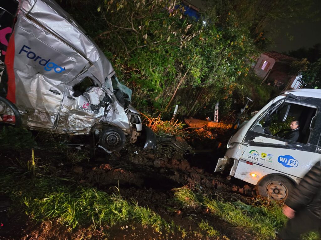 Na noite desta segunda-feira (15), um grave acidente de trânsito foi registrado na ERS-324, nas proximidades do Caixeiral Campestre, em Passo Fundo. A colisão frontal envolveu um micro-ônibus de uma empresa particular, que transportava funcionários de uma empresa local, e uma van pertencente a uma empresa de logística.
