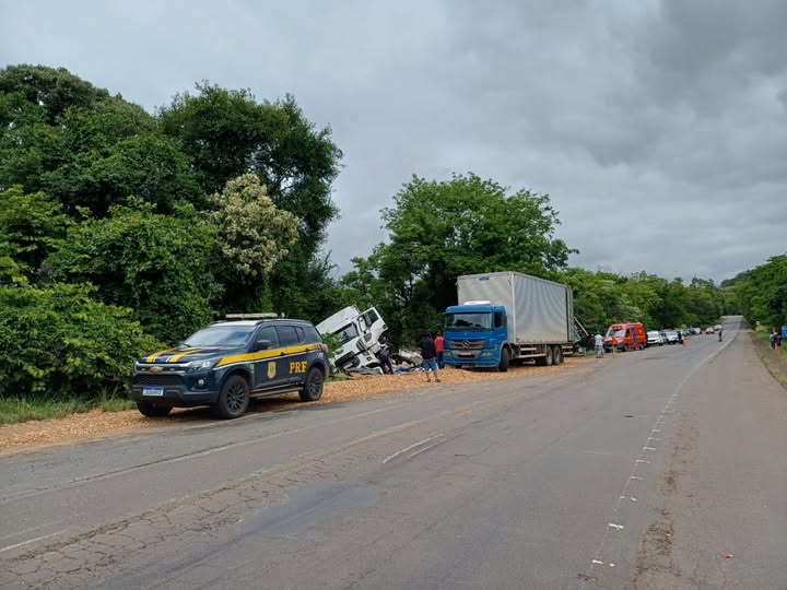 A Polícia Rodoviária Federal atendeu, na manhã de sábado (8), um grave acidente do tipo colisão lateral envolvendo três caminhões na BR-386, em Frederico Westphalen, no Norte do Estado. A ocorrência mobilizou equipes de resgate e de segurança após o impacto que resultou em uma vítima fatal e deixou outros dois motoristas feridos.