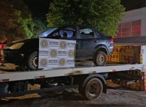 Durante a ocorrência, os policiais apreenderam 112 fardos de cerveja, um fardo de água mineral, seis aparelhos celulares, uma faca, uma touca balaclava e um veículo supostamente utilizado na prática do crime.
