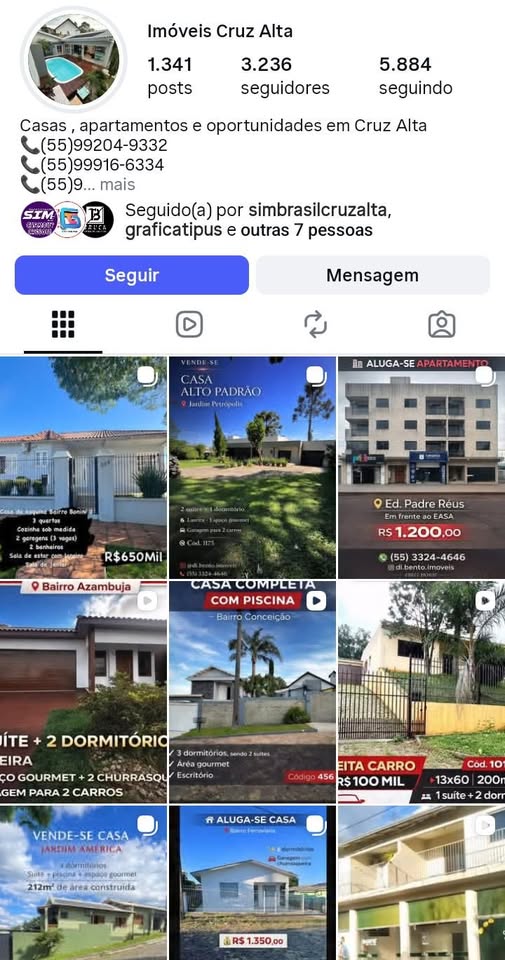 Imóveis Cruz Alta apresenta oportunidades exclusivas com atualização diária no Instagram