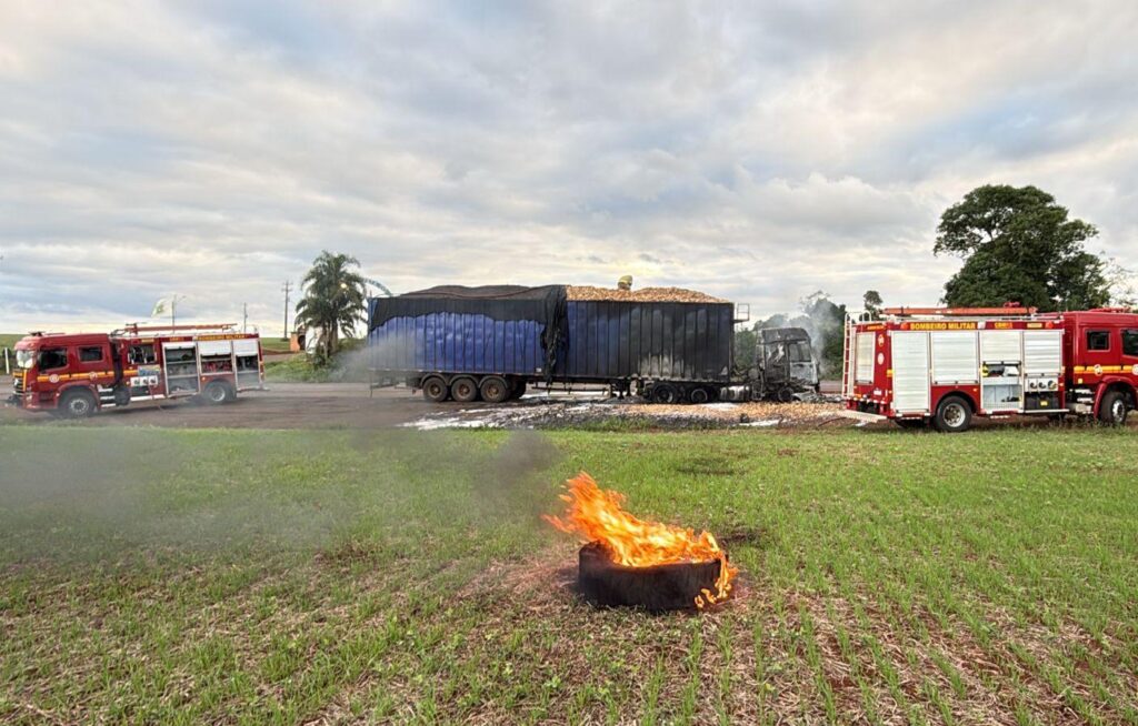 De acordo com informações apuradas no local, a carreta, que transportava cavaco, apresentou problemas na parte do motor do cavalo-trator. O motorista conseguiu estacionar o veículo e sair da cabine antes que as chamas se alastrassem.