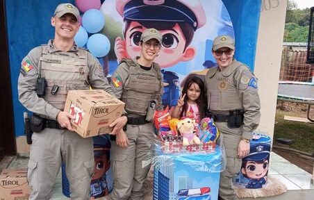 Sensibilizados com a história, os policiais de Panambi se mobilizaram rapidamente e prepararam uma surpresa especial: uma cesta recheada de guloseimas, leite e achocolatado, exatamente como Ester havia pedido. A entrega aconteceu durante a festinha de aniversário organizada pela família, em um momento marcado por emoção e alegria.