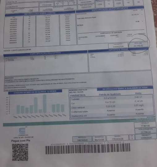 Um morador de Cruz Alta foi surpreendido ao receber uma conta de água no valor de R$ 22.788,42, referente ao mês de março, com vencimento previsto para abril. O montante chamou atenção por estar muito acima da média habitual do consumidor, que, segundo relato, costumava pagar entre R$ 150 e R$ 200 mensais.