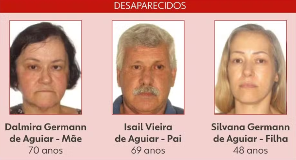 A investigação sobre o desaparecimento de Silvana Germann de Aguiar, de 48 anos, e de seus pais, Isail Vieira de Aguiar, de 69, e Dalmira Germann de Aguiar, de 70, avançou com a confirmação de vestígios de sangue encontrados na residência da mulher, em Cachoeirinha, na Região Metropolitana de Porto Alegre. A informação foi confirmada pelo delegado Anderson Spier à RBS TV nesta sexta-feira (6). Os três familiares não são localizados há mais de dez dias, e o caso é tratado oficialmente como crime.