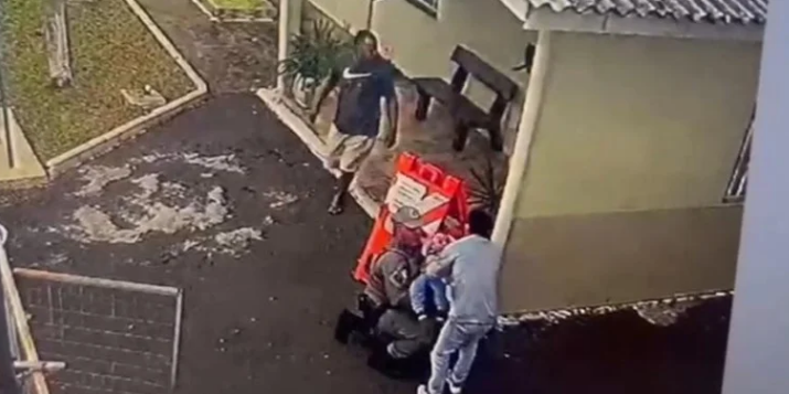 A guarnição foi surpreendida por uma família em desespero que buscou socorro diretamente na base policial. A mãe, angustiada, entregou o menino nos braços dos policiais, informando que ele havia se engasgado.