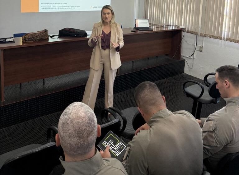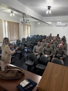Na última quinta-feira, 28/08, o Ministério Público do Rio Grande do Sul (MPRS), por meio da promotora de Justiça Amanda Giovanaz, titular da 1ª Promotoria Criminal de Cruz Alta, esteve no comando do 16º Batalhão da Brigada Militar para a apresentação do Projeto Fundadas Razões, iniciativa que busca qualificar a prova penal através da articulação interinstitucional entre o MP e as forças de segurança pública.