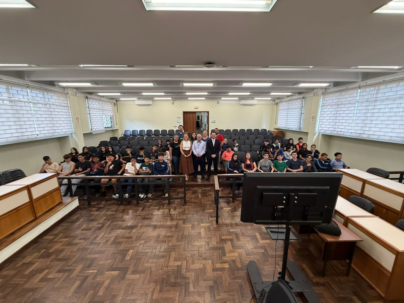 Nesta primeira atividade, participaram 38 alunos do 8º e 9º anos da Escola Municipal Alberto Pasqualini, acompanhados por professoras e pelo secretário municipal de Educação, Paulo Roberto de Moraes.