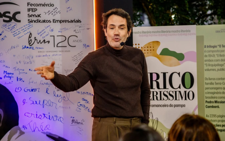 O ator gaúcho Rafa Sieg emocionou o público na 28ª Feira do Livro de Cruz Alta com a apresentação do espetáculo “Erico – Um Solo de Clarineta”, realizada no espaço Sesc. A montagem presta homenagem ao escritor cruz-altense Erico Verissimo, um dos maiores nomes da literatura brasileira, e ganhou um significado especial neste ano em que se celebram os 120 anos de seu nascimento e os 25 anos de carreira de Sieg.
