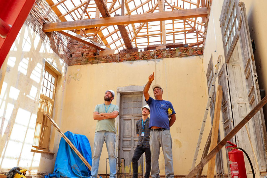 Com o avanço dos serviços, a obra atinge aproximadamente 62% do cronograma reprogramado pelo Estado. Na próxima etapa, os trabalhos se concentrarão na estruturação e instalação dos forros do segundo pavimento, que serão executados respeitando integralmente a configuração original do prédio.
