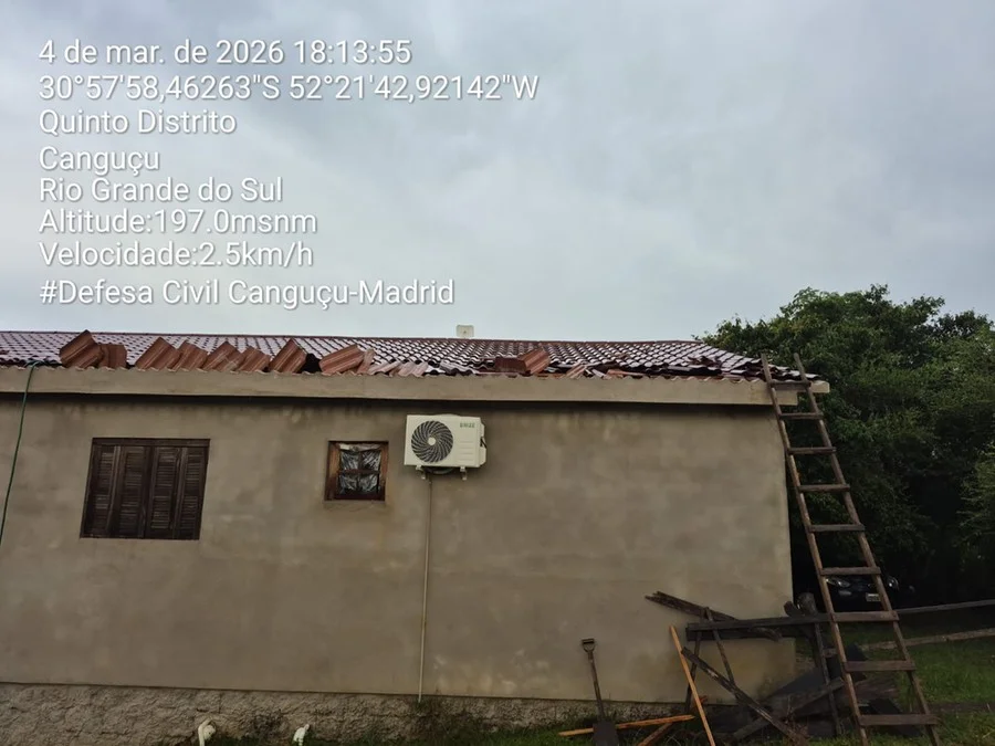 Em Canguçu, o temporal teve início no começo da tarde. De acordo com o coordenador municipal da Defesa Civil, César Augusto Madrid, o local mais atingido foi o 5º Distrito, na região da Armada.