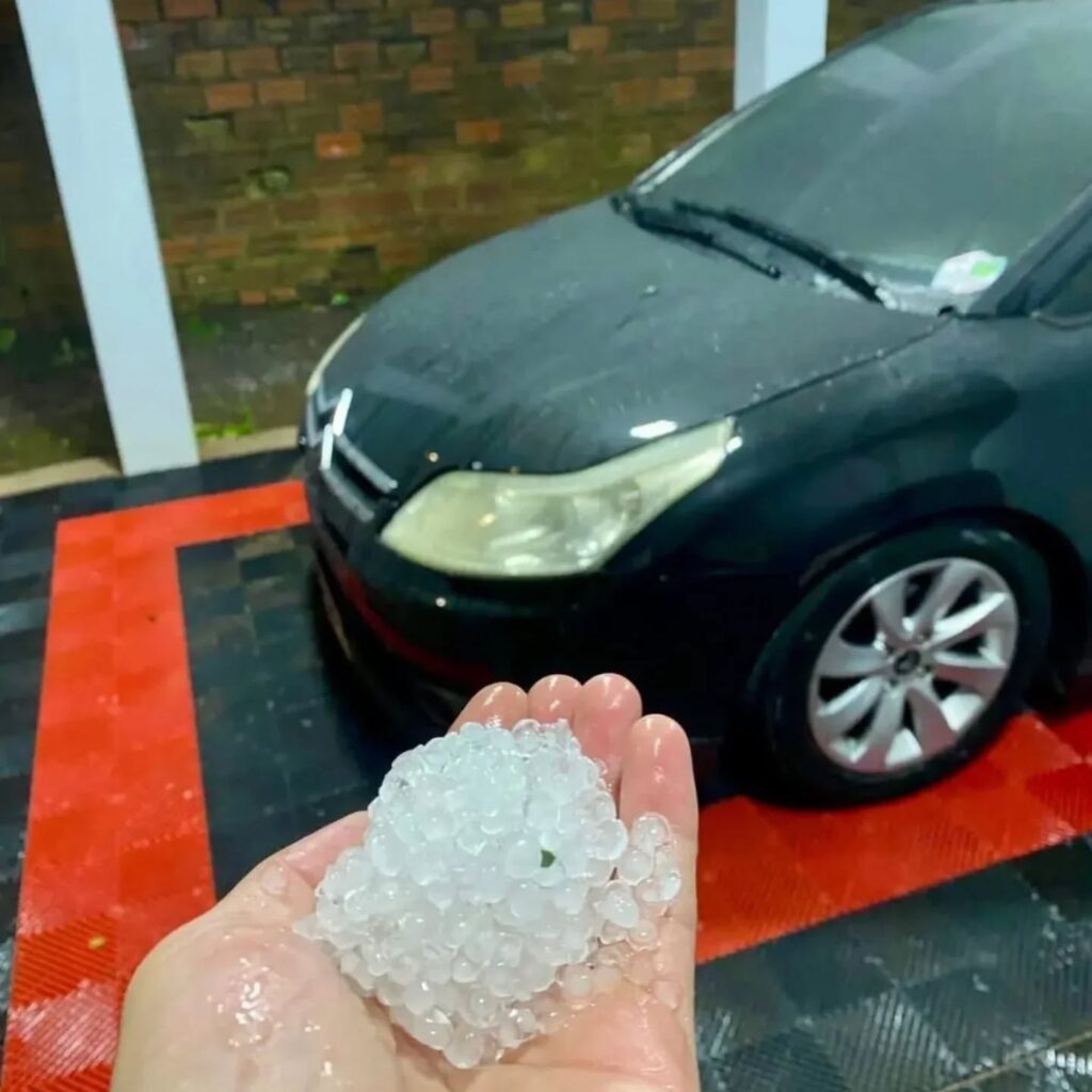 Conforme as primeiras informações, áreas de lavoura foram afetadas pela força da chuva, pelos ventos e também pela ocorrência de granizo em alguns locais. Há relatos de produtores que registraram volumes de chuva entre 70 e 80 milímetros em determinadas localidades, o que contribuiu para prejuízos ainda em fase de levantamento.