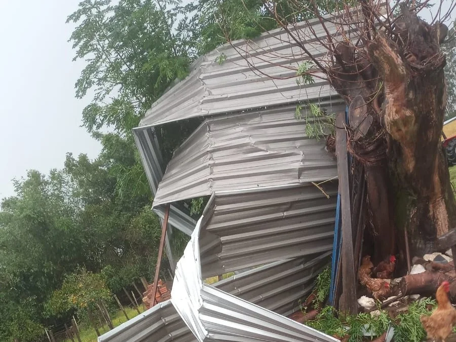 Os danos foram significativos na comunidade rural. Um galpão teve o telhado completamente arrancado e uma árvore de eucalipto caiu sobre a via, bloqueando o acesso à localidade. Em um raio de aproximadamente um quilômetro, outras duas residências também foram destelhadas. Ainda na manhã desta terça-feira (17), a Defesa Civil encaminhou materiais para que os moradores realizassem os reparos emergenciais.